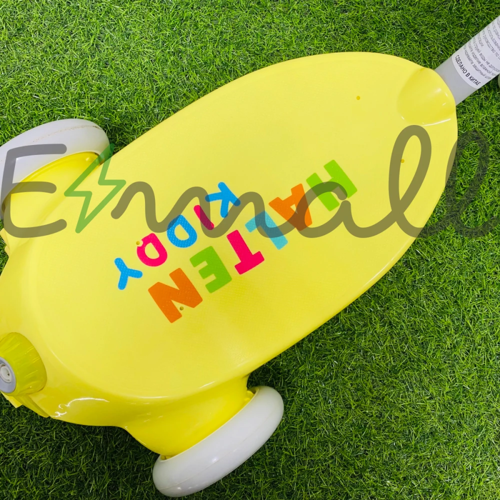 Электросамокат детский Halten Kiddy (жёлтый) – популярный вариант техники, рассчитанный на возрастной критерий от 3 до 5 лет. Главной особенностью, привлекающей покупателей является генератор мыльных пузырей, доставляющий малышу радость во время катания. В сочетании с красочным дизайном электросамокат детский создает ощущение сказки. Купить технику быстро, по цене производителя, воспользоваться приятными бонусами предлагает наш интернет-магазин.