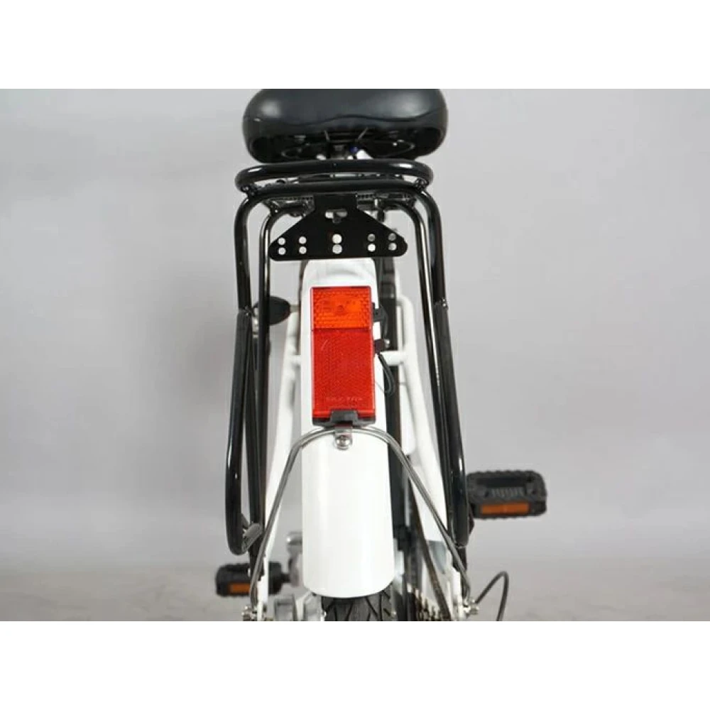 Электровелосипед AJ-EBA106-F белый выглядит эстетично привлекательно на фоне другой техники. Современный дизайн делает заметным модель, увеличивает спрос на тс. купить велогибрид по экономически выгодной стоимости предлагает наш интернет-магазин.